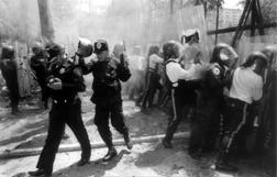 Marcha Zapata Vive. Un grupo de granaderos se protege