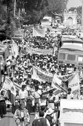 Aspecto de la marcha indígena rumbo a San Cristóbal