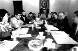 conferencia de prensa en el hotel María Isabel Sheraton.