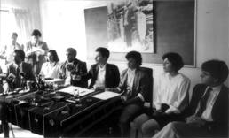 y Juan José Arreola durante el homenaje a Juan Rulfo