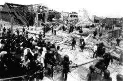 De pronto, según los testimonios, se escuchó una fuerte explosión que derribó las paredes y el techo de las dos empresas, arrancó los cristales de 70 vehículos y destrozó los vidrios de todos los inmuebles cercanos. La onda expansiva afectó también al domo del Archivo General de la Nación así como a la Cámara de Diputados y Palacio de Justicia. Habitantes de Tlatelolco narraron que tras la detonación ``se vio como un hongo y luego mucho humo y polvo''.