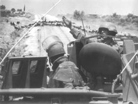 patrulla y un puesto militar en la zona de ocupación. En la foto,