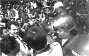 MANIFESTANTES, REPORTEROS, Y POLICIAS