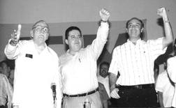 del PRI estatal en Nuevo León, flanquean a Santiago Oñate,