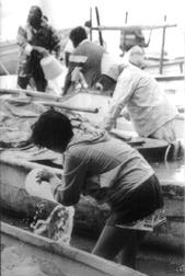 agua de sus botes luego del paso del ciclón