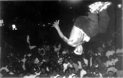 La primera en correr atemorizada fue una jovencita de 14 años a quien el grupo de ``eufóricos'' persiguió. Ella sólo recibió ``caricias'' eufóricas, pues el haber alcanzado la espalda del subinspector de la Secretaría de Seguridad Pública, Manuel Gutiérrez, la salvó de ser desnudada.