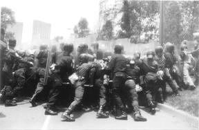 MUJERES DEL PFCRN CHOCAN CON GRANADEROS