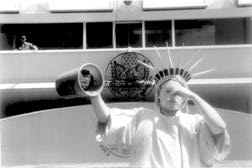 Singular estatua de la Libertad de Greenpeace en su