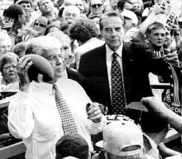 candidato presidencial republicano observa a Jack Kemp lanzar un balón