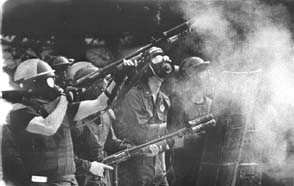 Policías antimotines lanzan gases lacrimógenos a los dos edificios