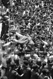 por una eufórica muchedumbre.