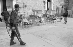 Al frente del convoy, que incluyó tres tanquetas, llegó el general de división Delfín Mario Palmerín, comandante de la octava Región Militar, con sede en Ixtepec, Oaxaca, quien se abstuvo de hacer declaraciones sobre su misión.