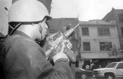 Insistió en que el llamado que la Iglesia hace a las partes es a sentarse a la mesa y dialogar, no a dispararse. ``Llamamos a no usar las metralletas, porque éstas nunca han resuelto los problemas de la humanidad. La metralleta complica los problemas, los agudiza, los exacerba, los agrava, jamás los ha resuelto''.
