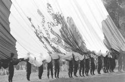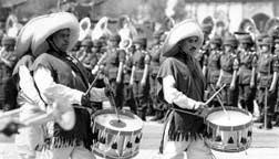Zacapoaxtlas y militares, durante el desfile mílitar.