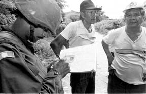Soldados anotan en una gran lista nombres y datos de quienes entran y