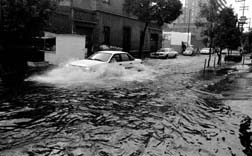 Inundación en la calle Gelati, esquina José Vasconcelos,