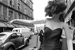 Maniquí en una calle del primer cuadro de la ciudad
