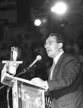 la convención de su partido, en el gimnasio Juan de la Barrera.