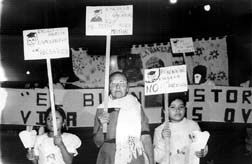 Juana Rodríguez, de 68 años, y dos nietas protestan contra la