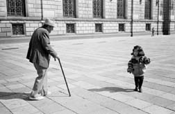 Vida cotidiana en el Zócalo capitalino: viejo con niñita