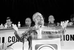 Diego estaba ansioso por fijar, desde la tribuna, su posición al respecto; pero tuvo que esperar a que hablaran todos los gobernadores de extracción panista --Francisco Barrio, Héctor Terán, Vicente Fox y Alberto Cárdenas-- antes de poder responder. Desde un lugar entre los convencionistas pedía tiempo. Y cuando le dieron la palabra, engallado, fue hasta el atril.