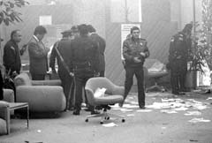 Interior de la sucursal de Banamex, luego de que estalló una bomba