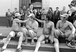 frente al Senado. Irma Serrano los saluda al llegar