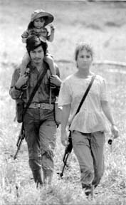 civil, dos combatientes de la URNG y su hija se dirigen a presenciar