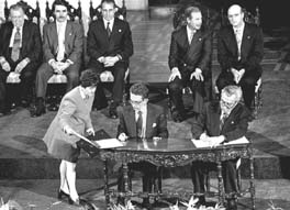 el comandante guerrillero Rolando Morán firman el histórico documento,