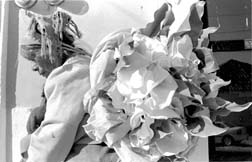 Vendedora de flores rumbo al mercado de Santo Domingo,