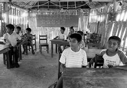 En el ejido Ojo de Agua, alumnos de primaria en una de las
