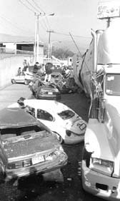 Un tráiler sin control embistió ayer a varios automóviles en