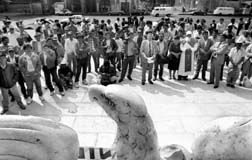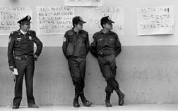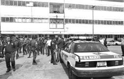 en protesta por la aprehensión de cuatro policías