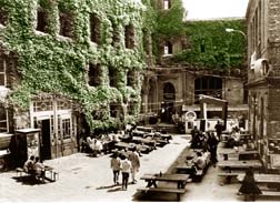 Llegamos al día siguiente y lo primero que vimos fueron unas extrañas bicicletas de ruedas cuadradas o formas risibles; especie de esculturas o instalaciones, pensamos, pero en verdad funcionaban, la gente se trepaba y jugaba con ellas; más tarde supimos que eran creaciones de un taller que, además de inventar extraños artefactos, reparaba bicicletas descompuestas con recursos "alternativos", es decir, baratos y usados, opción importante en esa ciudad bicicletera. Nos sentamos en unas mesas al aire libre para echarnos unas chelas y platicar con algunos locos que, después supimos, nada tenían que ver con la organización. En realidad, el WUK es un territorio magnético que atrae igualmente a los seres más curiosos o "dañados", quizá porque saben que en ese sitio encontrarán algo más que una tolerancia indiferente: la interlocución, como en un manicomio de puertas abiertas, según podría llamarlo Franca Basaglia.