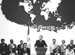 El presidente Ernesto Zedillo, durante la inauguración del Congreso Internacional de Educación. Foto: Frida Hartz