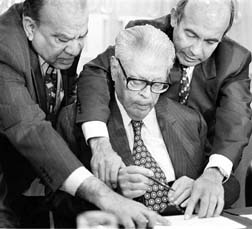 Fidel Velázquez firma un acuerdo entre la CTM y el Instituto