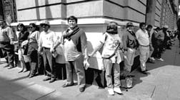 simbólicamente el edificio de la SEP con una cadena humana.