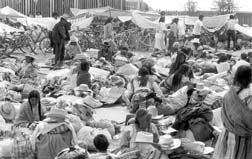 Peregrinos del Estado de México descansan en el atrio de