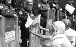 bloqueados en su trayecto a Los Pinos. Foto: Carlos Ramos Mamahua