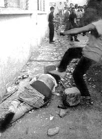 a la capital guatemalteca, patea el cadáver de una mujer acusada del
