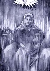 La visitaba San Agustín y ella le hablaba como si fuera San Martín de Porres; a San Francisco de Asís lo creía San Luis Rey; la Virgen María y María Magdalena se le hicieron la misma persona, y los vascos y los gallegos no hubieran aceptado de tan buen talante que se confundiera, como ella lo hacía, a San Andrés con Santiago Apóstol, pero todos ellos, pacientes y amorosos, soportaban sus confusiones como bromas, incluso reían, y ninguno intentaba sacarla del error; sin embargo, todo aquello que la Corte Celestial tomaba con buen ánimo y sin preocupación alguna, se fue haciendo un dolor y un calvario cada vez más grande para la familia de la Amachi.