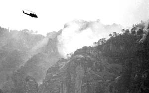 En el combate al fuego participaron helicópteros militares. La titular