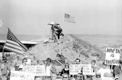 Manifestantes estadunidenses festejan el inicio de la construcción