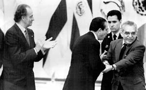 El presidente Ernesto Zedillo felicita a Gabriel García Márquez;