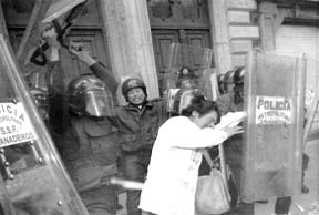 ciudad de México; aquí, los granaderos impiden a un grupo de