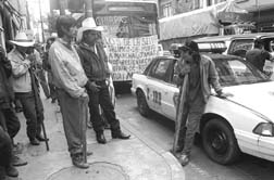 Campesinos chiapanecos, algunos de ellos con palos, permanecen