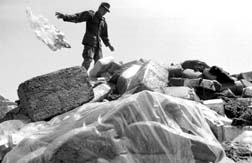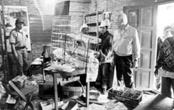 H. Alvarez observa los destrozos en una de