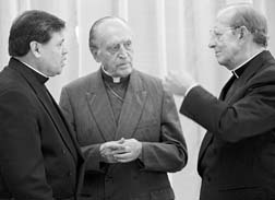 El nuncio, flanqueado por Norberto Rivera y el líder de la