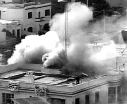 Imagen tomada de la televisión en el momento en que los explosivos son