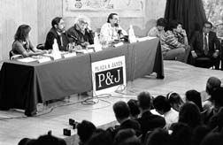 El autor Yvon Le Bot y Carlos Monsiváis, entre otros, durante